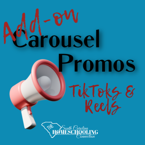 Carousel Promos: TikToks & Reels In collaboration with the Cola City Homeschool Expo 2026, we’re offering a special promotional opportunity included for our Sponsors. But, also available to add-on for in-person vendors! This year’s theme is Grow Your Village: Connect-Expand-Thrive Showcase your program/resource in more detail with a carousel ad. Cola City Homeschool Expo 2026 […]